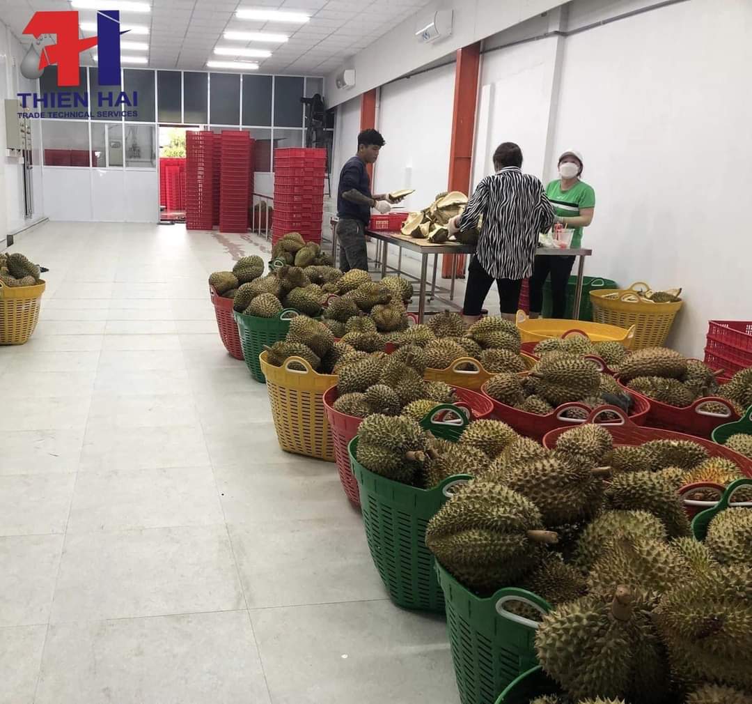 Sầu riêng sẽ trải qua quá trình cấp đông nhanh ở nhiệt độ -40oC và sau đó được đưa vào kho trữ đông có nhiệt độ từ -18oC đến -25oC để bảo quản.