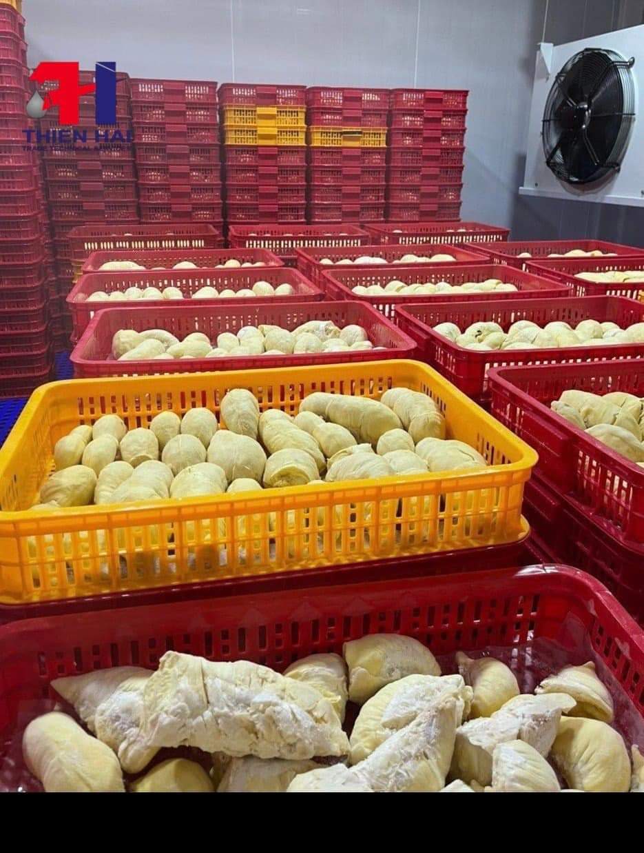 Sầu riêng sẽ trải qua quá trình cấp đông nhanh ở nhiệt độ -40oC và sau đó được đưa vào kho trữ đông có nhiệt độ từ -18oC đến -25oC để bảo quản.